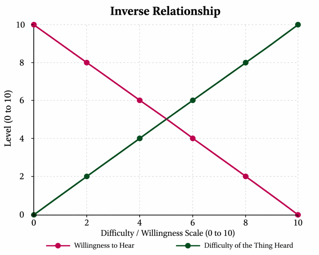 Isn’t funny that when God speaks to us our willingness to admit He’s speaking to us directly correlates to what He’s calling us to do? If “willingness to hear” and “level of difficulty of the thing He’s asking” were represented on a graph they might just have an exactly inverse relationship.
